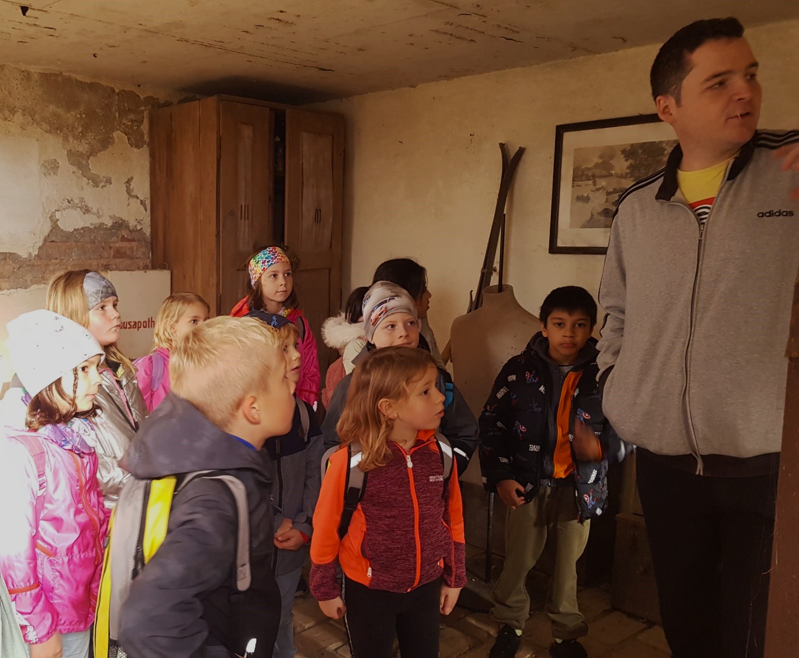 Als Einstimmung auf die Herbstferien führten wir am Dienstag, 24. 10. unseren Wandertag durch. Begleitet und geführt wurden wir auch heuer wieder von Franz Osabal, der den Kindern ihre unmittelbare Umgebung näherbringen konnte und so manch spannende Geschichte präsentierte. Außerdem durften wir den Bunker besichtigen, was die Fantasie der Kinder sehr anregte. Unsere tüchtigen Kinder waren an diesem Vormittag unsere Helden und es kamen sicher einige sehr müde zu Hause an.